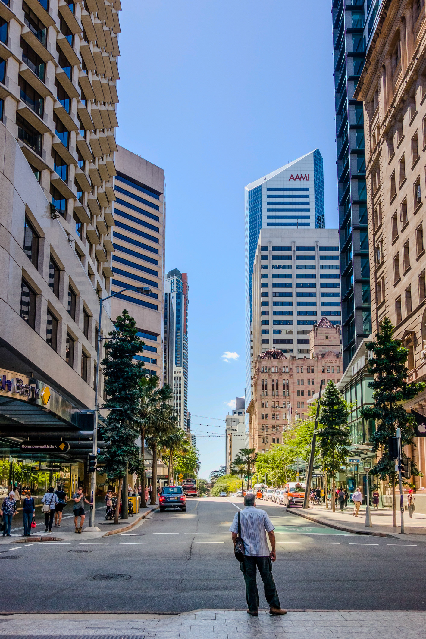 In my landscapes and cityscapes, I often weave in the presence of people, relishing the juxtaposition of the city’s rigid forms with the dynamic human interactions within. This interplay mirrors the contrast between humanity and the natural world. Including figures not only provides a sense of scale but also animates the scene. My compositions frequently feature leading lines to guide the viewer’s gaze, high contrast lighting or colour, and prominent vertical lines.